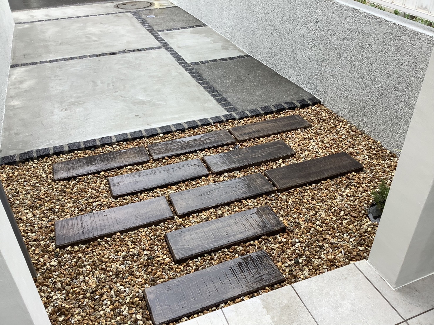 リガーデン工事シンプルアプローチ植栽/伐採移植芝庭花壇